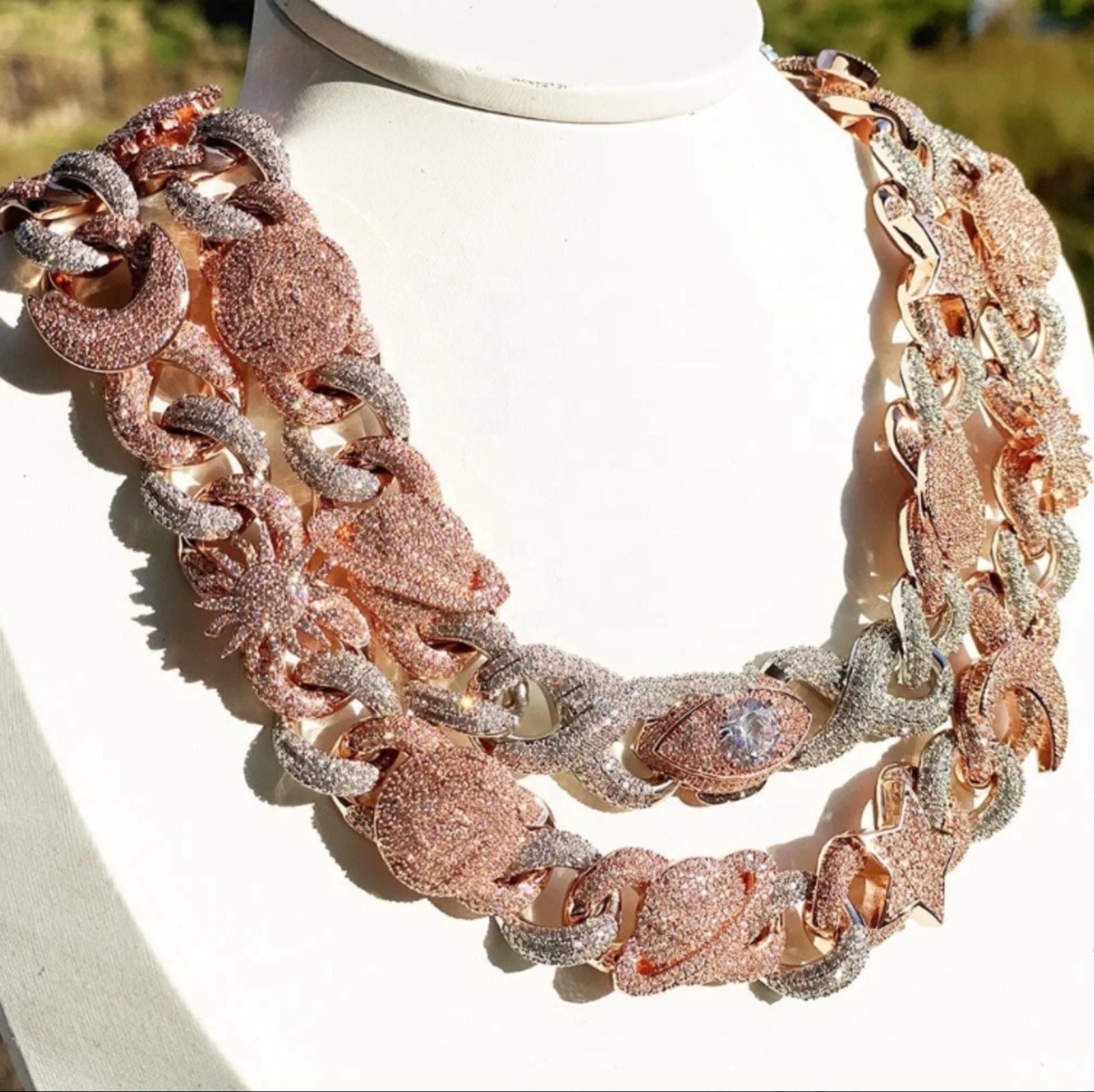 Mens Stamp 14K Gold Plated 5A CZ Diamond Ice Out Charm Chain Cubian Chain 17MM 23MM