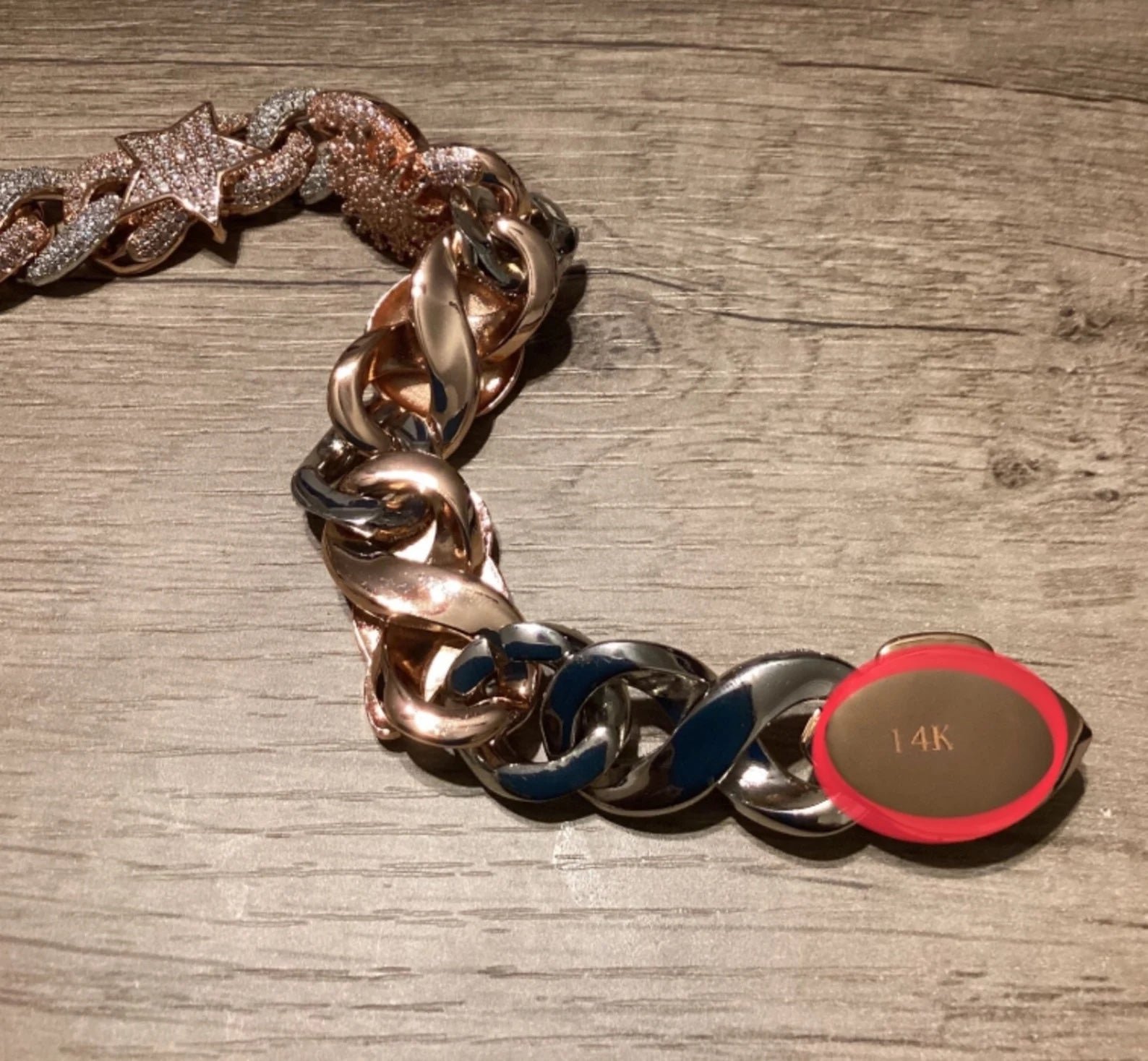 100% Ice Out 14k Gold Plated Finish, so it will not TARNISH OR CHANGE COLOR